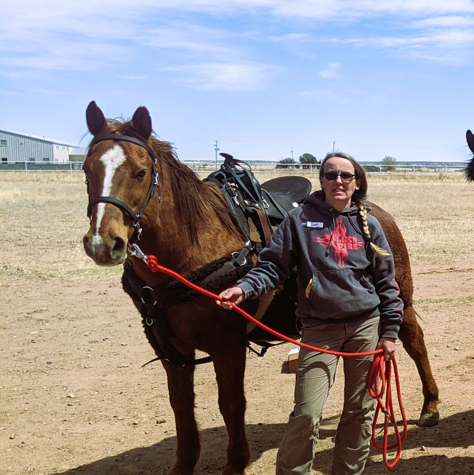 He was adopted through Walkin’ N Circles Ranch, right here in Edgewood, NM. He was gathered in Northern NM with his band of mares and foals. He was a wild stallion for 13+ years of his life. When I met him at WNCR in 2013, he was still a stallion, and I immediately fell in love with this tough guy. I saw something in Chama no one else had seen – true to his name (Chama means ‘little boy’ in Spanish), there was a sweet soul buried beneath all the toughness.